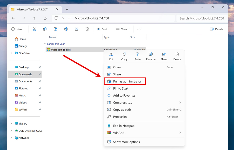 **ขั้นตอนที่ 2:** เรียกใช้ไฟล์ `MicrosoftTookit.exe` ด้วยสิทธิ์ **Run as administrator**