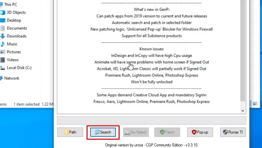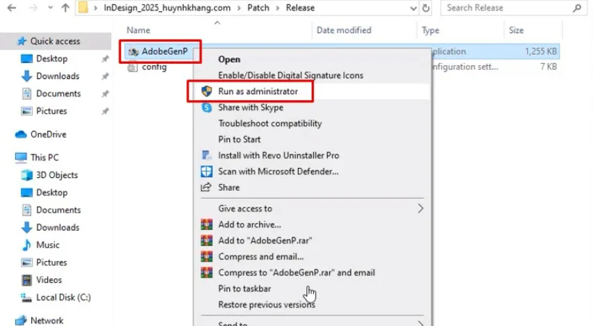 เรียกใช้ไฟล์ AdobeGenP โดยใช้ Admin