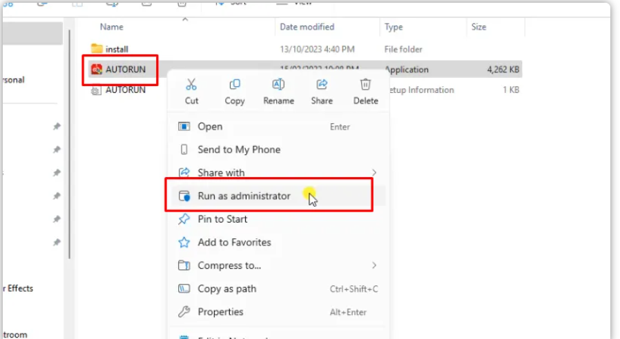 ขั้นตอนที่ 2: เรียกใช้ไฟล์ติดตั้ง AUTORUN ด้วยสิทธิ์ผู้ดูแลระบบ