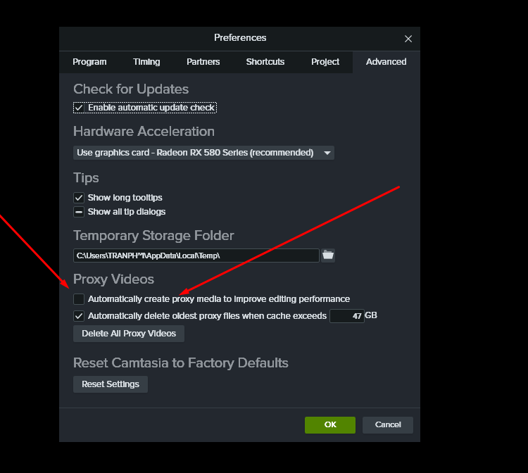 หมายเหตุ: ถ้าออยากดูวิดีโอความคมชัดใน Camtasia ให้เอาเครื่องหมายถูกออกที่นี่