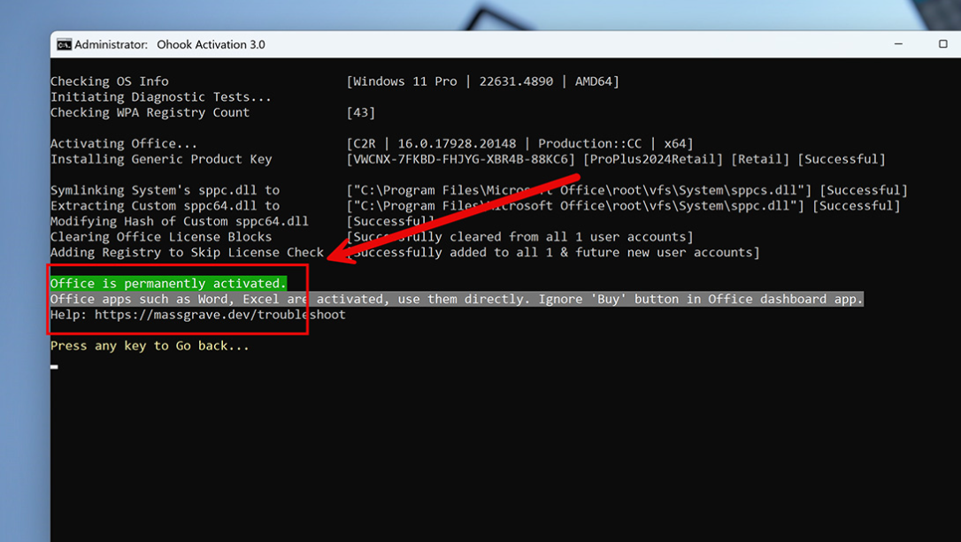 Microsoft Activation Scripts v3.0 สามารถรองรับการเปิดใช้งานลิขสิทธิ์สำหรับ Office 2024 – เวอร์ชันล่าสุดของ Microsoft Office แล้ว